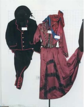 Abito da sposa del 1910 in seta stampata a colori e abito del 1985 in raso di seta operata con "tajutu" in raso ricamato e pizzo valencienne.
